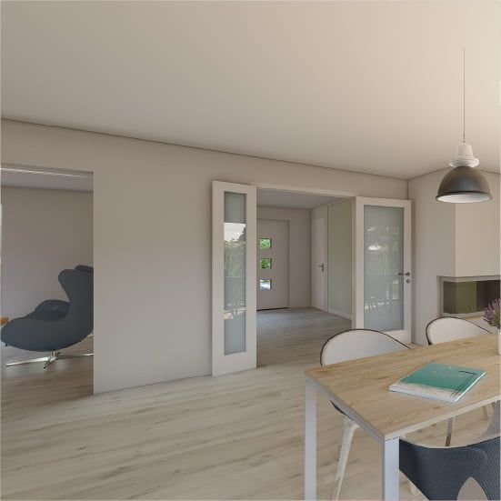Boligen har 4 soverom på samme plan, hvor hovedsoverommet er utstyrt med en walk-in garderobe for enkel organisering. Dette gir en følelse av orden og luksus i hverdagen. En adskilt TV-stue gir muligheten for ro og avslapning, samtidig som den kan åpnes til en større vinkelstue for å skape et mer sosialt område. Med stramme linjer og vakre detaljer, skaper denne boligen et inntrykk av både styrke og estetikk.