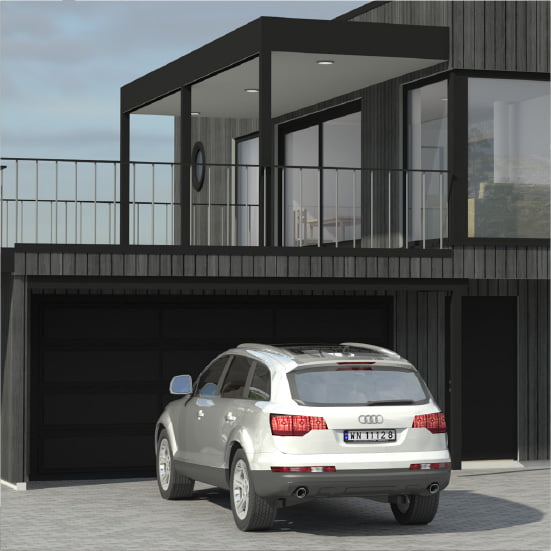 Engersand er et moderne hus med et elegant og funksjonelt design. De stramme linjene og de store vindusflatene gir boligen en åpen og lys atmosfære. Kjøkkenet er sentrert midt i rommet og fungerer som en romslig og sosial sone som samler familie og venner. Dette gir et naturlig midtpunkt for hjemmet, med enkel tilgang til stue og andre oppholdsrom.