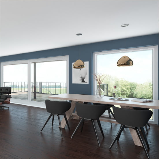 Engersand har store vindusflater som gir mye naturlig lys og en følelse av åpenhet. De store vinduene åpner hjemmet mot omgivelsene og skaper en luftig atmosfære som fyller rommene med varme og velvære. Denne designen gjør hjemmet til et innbydende sted hvor du alltid vil føle deg velkommen, og gir en følelse av romslighet i hver kvadratmeter.