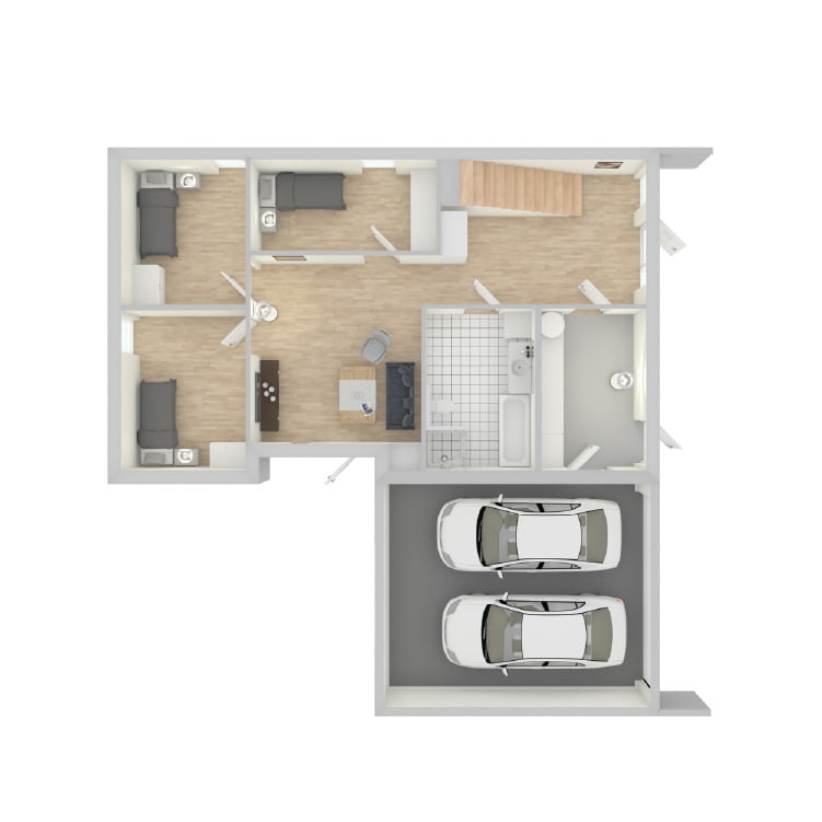 De store vindusflatene fyller rommene med naturlig lys, noe som gir en varm og velkommende atmosfære. Kjøkkenet, som fungerer som et sosialt samlingspunkt, er strategisk plassert for å gjøre matlaging og servering til en glede. Samtidig gir den integrerte garasjen ekstra bekvemmelighet og sikkerhet for oppbevaring av bilen.
