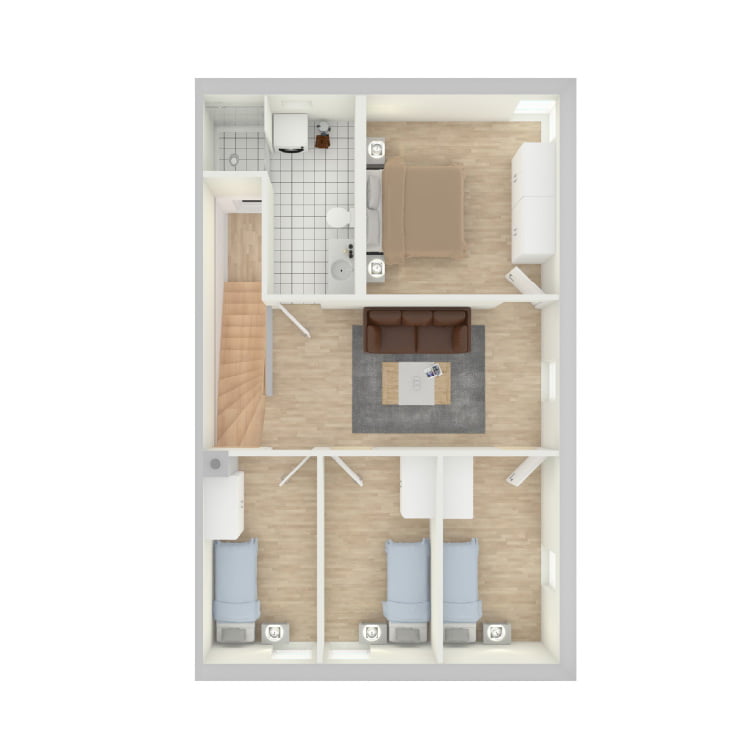 Hver etasje er designet med tanke på optimal utnyttelse av plassen, noe som gir fleksibilitet for å tilpasse rommene til ulike behov. De store vinduene i kjøkken- og stueområdet gir rikelig med naturlig lys, noe som skaper et lyst og åpent miljø. Med fire soverom er det god plass for hele familien, enten det er som barnerom, gjesterom eller hjemmekontor.