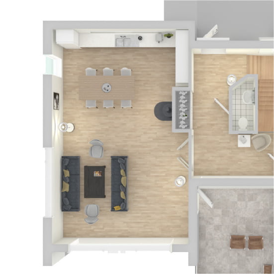 Boligen er designet slik at inngangen kan plasseres i underetasjen, noe som gjør den enkel å tilpasse de fleste tomter. Den godkjente utleiedelen, med ett soverom, er en praktisk løsning som gjør boligen ideell for flere ulike livssituasjoner. Fjordparken er en bolig som tilpasser seg dine behov, enten du ønsker et ekstra rom for gjester, eller en stabil leieinntekt.